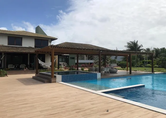 تقع Casa Com 950M2 - Condominio Enseadinha المكونة من 9 غرفة نوم في غضون نحو 25 دقائق سيرًا على الأقدام من Serrambi، وتوفّر الشرفة مع إطلالات على الحديقة.